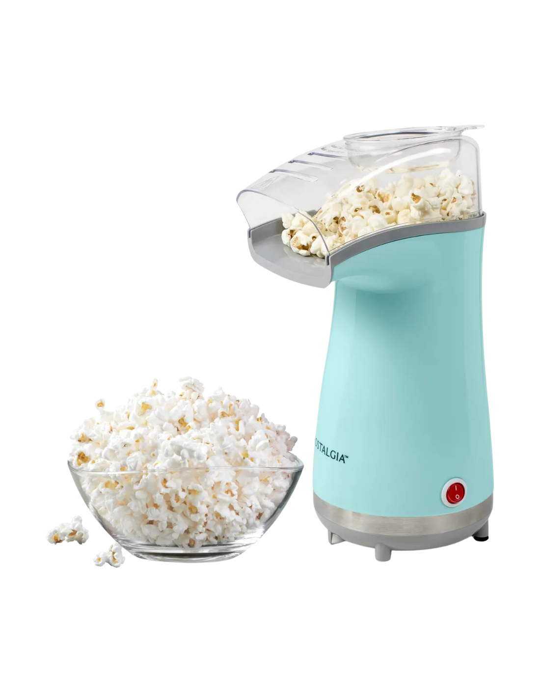 Peso del producto: 0.97kg. Medidas del producto: 18.3×11.2×28.7cm. Material principal: plástico pc, pa, abs y aluminio. El aire caliente hace estallar los granos de maíz para obtener pochoclos saludables y sin aceite. El diseño exclusivo de la cámara de cocción crea un flujo de aire giratorio para reducir la cantidad de granos sin reventar. Fácil de usar y fácil de limpiar.