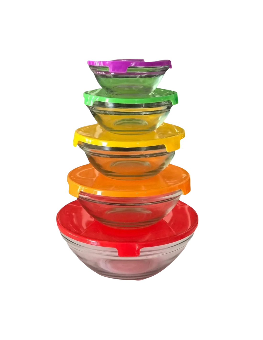 Set De 5 Bowls De Vidrio Con Tapa Multicolor