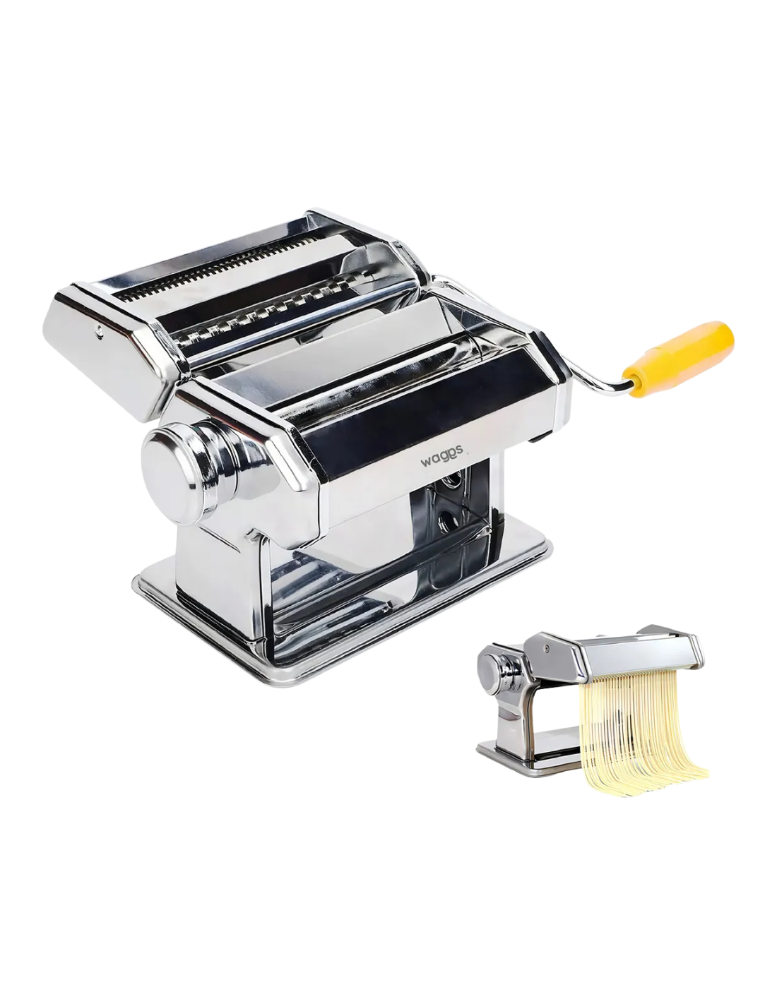 Máquina de pastas de acero inoxidable. Incluye accesorio para hacer fideos, rodillo ajustable, sujetador para la mesada y manija removibles. Incluye instructivo en español. Medidas cuerpo principal: 12cm de alto x 18cm de ancho x 11cm de profundidad. Medidas accesorios: 4,5cm de alto x 18cm de ancho x 11cm de profundidad. Color: plateado con terminación espejada.