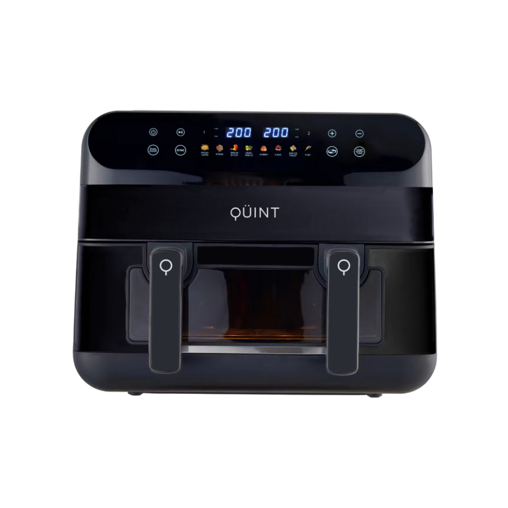 FREIDORA DE AIRE 10 litros de Quint. Freidora Quint 10 litros. Descubrí una nueva forma de cocinar con la freidora de aire QUINT de 10 litros. Su gran capacidad y potencia de 2400W te permiten preparar comidas para toda la familia de forma rápida, saludable y sin aceite. Ideal para papas fritas, carnes, vegetales, pasteles y mucho más. Medidas: 39.7 x 34.9 x 36.3 cm Voltaje: 220–240V | Frecuencia: 50/60Hz Producto ideal para uso cotidiano, con diseño funcional y materiales de calidad.